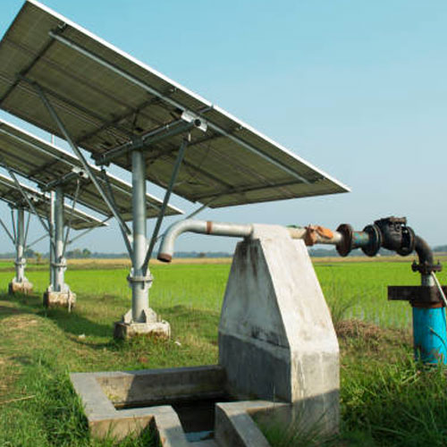 The photo voltaic(PV) array converts the solar energy into electricity, which is used for running the pump motor. The system requires a shadow-free area for installation of the Solar panels.
